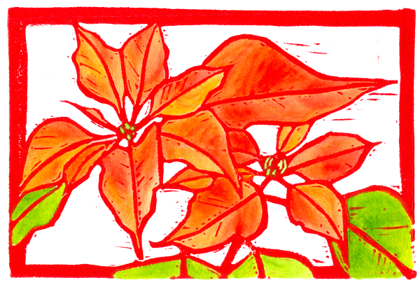 Poinsettia Posted byprintmakertracyFebruary 15, 2016May 21, 2016Posted inUncategorized Poinsettia, block print with watercolor Here’s my latest print. I also did a version printed in black, but I like this one better because the colors make me happy. I can’t help myself. Share this: Click to share on X (Opens in new window) X Click to share on Facebook (Opens in new window) Facebook Like Loading... Related Published by printmakertracy I am a printmaker living in Vermont. I print by hand with water-based inks on archival paper at my kitchen table. My work is inspired by my family, festivals and nature. View more posts